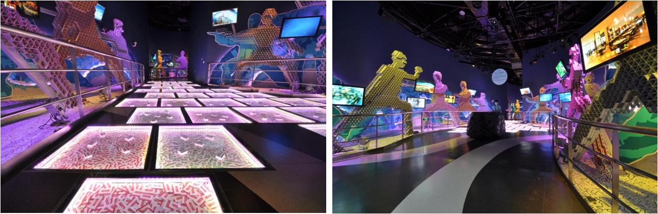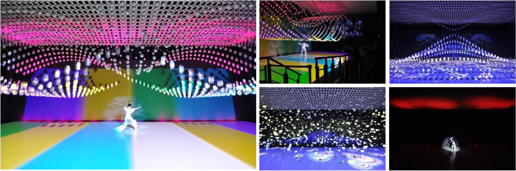 展馆以“细胞~Living Cell~”为设计理念,由多个巨型圆柱体排列组合而成,这些圆柱通过完美协调的曲面有机地结合在一起,寓意着多家民营企业的聚合出展。展馆内的“浮球矩阵系统~Floating Sphere”由1008个球体组成,在音乐的起伏中不断变幻结构、画面和运动轨迹来演绎四季,歌颂生命,将高科技与艺术表演融为一体,给观众带来奇妙感受。